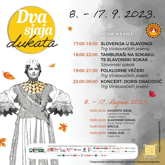 Ova hvale vrijedna manifestacija počinje u 17 sati na Trgu Vinkovačkih jeseni gdje će se predstaviti običaji i gastro ponuda Slovenija u Slavoniji. Za večernju zabavu će se pobrinuti TS Slavonski Sokak a u 22 sata nastupa Doris Dragović.