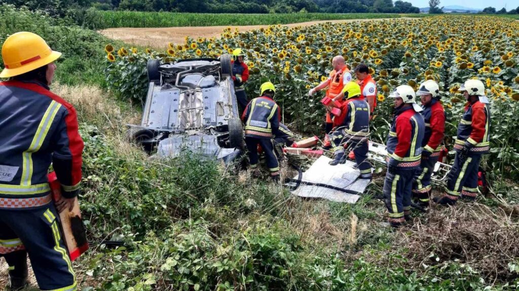 Teška prometna nesreća dogodila se ove subote oko 13 sati na cesti između Sigeca Ludbreškog i Sesveta Ludbreških. Tamo je vozač autom sletio u polje suncokreta i preokrenuo se na krov.