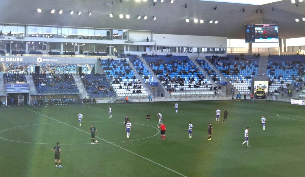 Nogometaši NK Osijek i HNK Gorica odigrali su bez pogodaka 0:0 u prvom subotnjem susretu 26. kola SuperSport HNL na osječkoj Opus Arena.