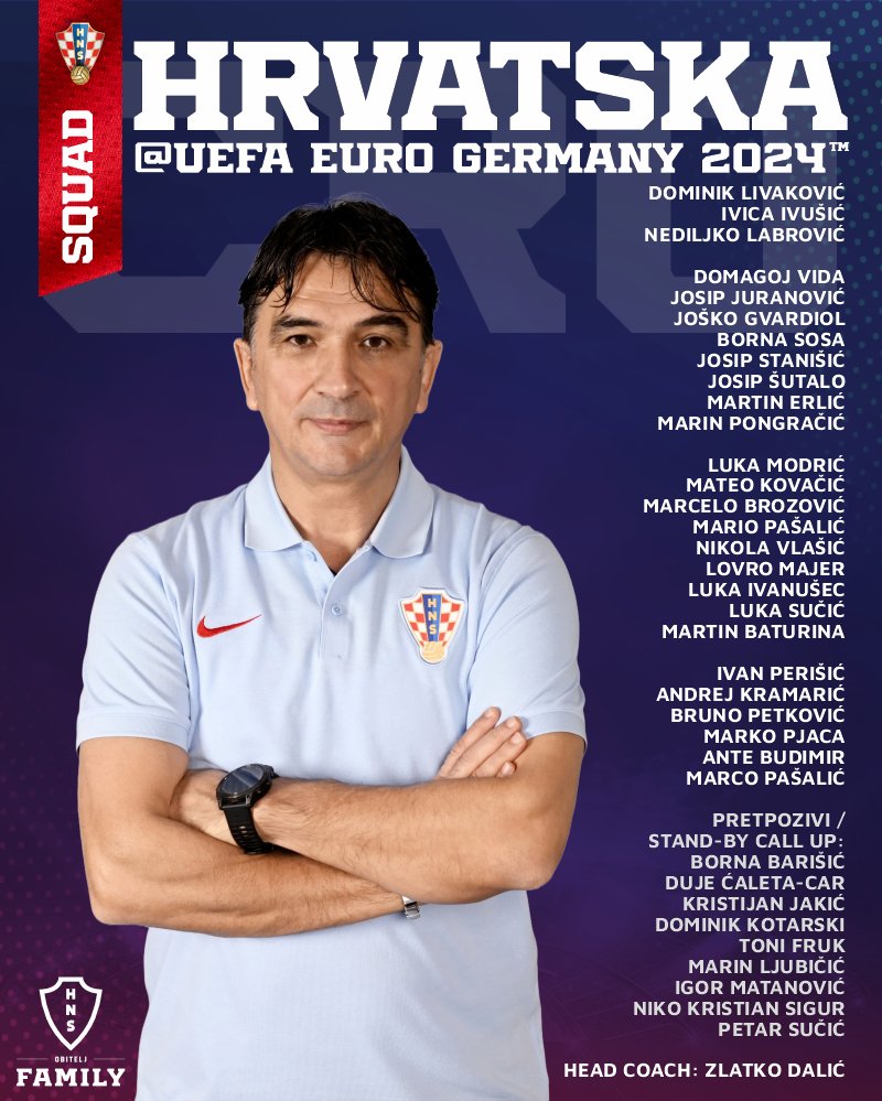 Hrvatska će Euro otvoriti 15. lipnja dvobojem protiv Španjolske u Berlinu. U skupini B s Vatrenima još su Albanija s kojom će Dalićevi izabranici igrati 19. lipnja u Hamburgu, te Italija. Dvoboj s Azzurrima na rasporedu je 24. lipnja u Leipzigu.