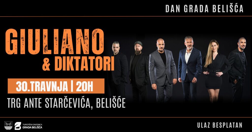 U sklopu obilježavanja Dana grada Belišća, posjetitelje očekuje glazbena večer uz jednog od najomiljenijih domaćih izvođača – Giuliano. U pratnji svog benda Diktatori, nastupit će 30. travnja s početkom u 20 sati na Trgu Ante Starčevića.