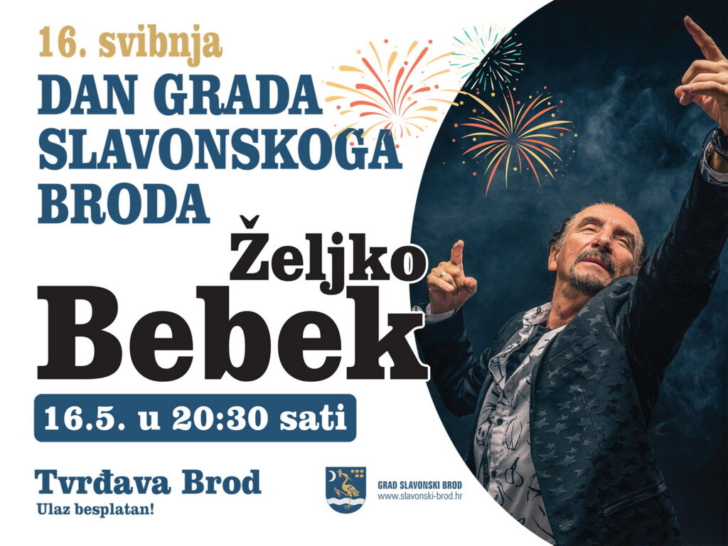 Povodom obilježavanja Dana grada, u subotu 16. svibnja s početkom u 20:30 sati, u Tvrđavi Brod održat će se koncert jednog od Željka Bebeka