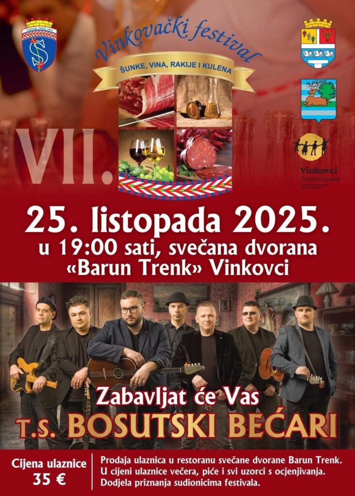 7. Vinkovački festival šunke, vina, rakije i kulena održat će se 25. listopada