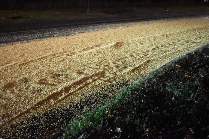 Očevid je u tijeku, a okolnosti pod kojima je došlo do rasipanja kukuruza bit će poznate nakon dovršetka policinskog postupka.
