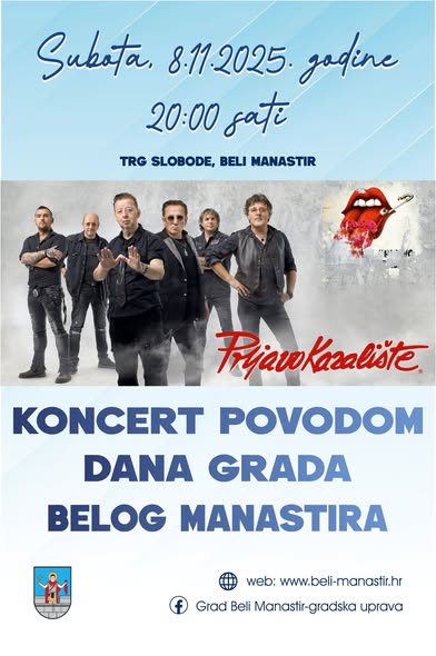 Povodom Dana grada Belog Manastira, građane i posjetitelje očekuje pravi glazbeni spektakl – besplatan koncert legendarne grupe Prljavo kazalište.