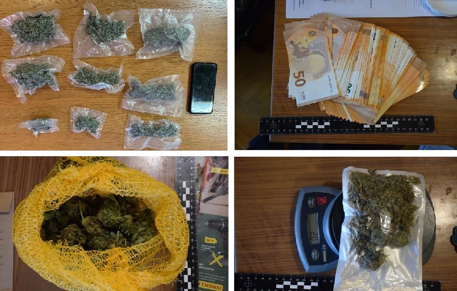 Tijekom pretrage doma i vozila pronađeno je i oduzeto 1.817,9 grama marihuane, dvije stabljike indijske konoplje, tri precizne digitalne vage, 84 tablete bez liječničkog odobrenja a koje su na popisu droga, i preko 6.000 eura, navodi policija u priopćenju.