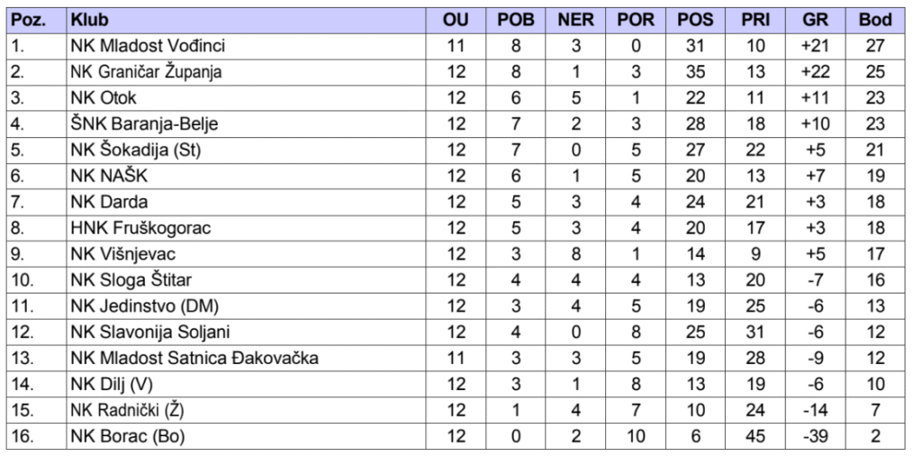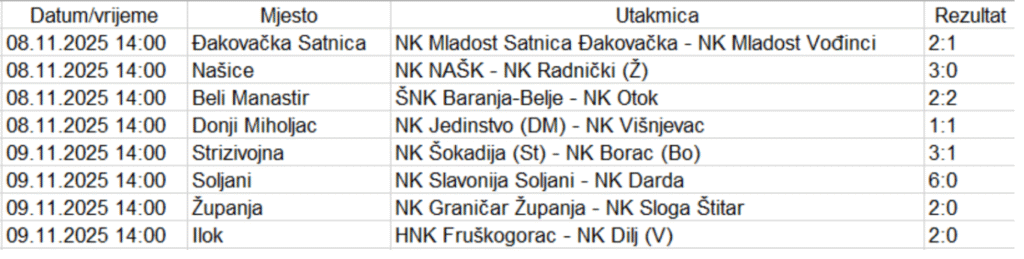 U nastavku teksta vam donosimo rezultate i tablicu Međužupanijske nogometne lige Osijek i Vinkovci – Seniori: