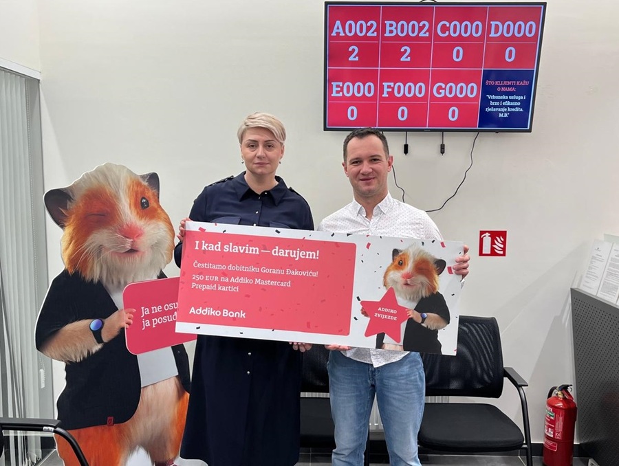 Zadovoljan klijent belomanastirske poslovnice, Goran Đaković, nagrađen je s 250 eura kao simboličnom zahvalom za sudjelovanje u ocjenjivanju. Addiko banka već treću godinu zaredom, putem anketa, uključuje klijente u proces unapređivanja svojih poslovnih procesa i podizanja razine zadovoljstva i dobrog iskustva u poslovnicama.