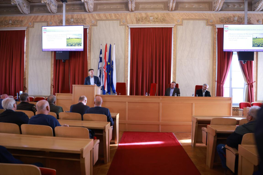 U Velikoj vijećnici Skupštine Osječko-baranjske županije, danas, 19. prosinca 2023. godine je održana Tribina o ratarskoj proizvodnji u okolnostima šteta od divljači na području Baranje kojoj su nazočili predstavnici poljoprivrednih proizvođača, predsjednik Lovačkog saveza Osječko-baranjske županije Antun Blažević, predstavnici MUP-a, pročelnik UO za poljoprivredu i ruralni razvoj OBŽ Romeo Jukić te zamjenik župana Josip Miletić.