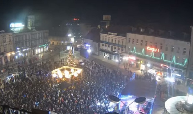Doček Nove godine organiziran je u skladu s važećim epidemiološkim mjerama, pa je Trg ograđen, a u Gradskoj upravi najavili su kako će u ograđeni prostor moći ući samo građani s valjanim covid potvrdama.