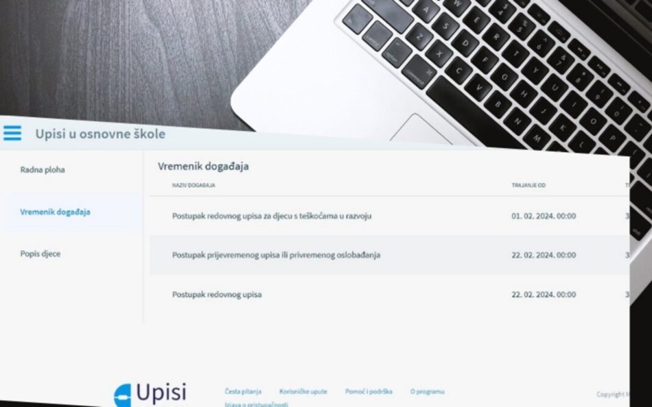 Roditelji online podnose zahtjev za upis djeteta u 1. razred osnovne škole, kao i za prijevremeni upis ili privremeno oslobađanje od upisa.