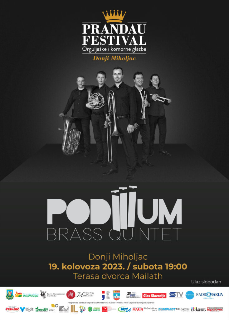 Ljubitelji limenih puhačkih instrumenata, u okviru programa Prandau Festivala konačno će imati priliku uživati u vrhunskoj izvedbi iskusnih glazbenika koji su iz ljubavi prema puhačkim instrumentima i komornom muziciranju u studenom 2014. godine osnovali Podium Brass Quintet, a čini ga pet izvrsnih glazbenika: Marko Bobičanec (truba), Marin Zokić (truba), Hrvoje Pintarić (rog), Ivan Mučić (trombon) i Danijel Požgaj (truba).