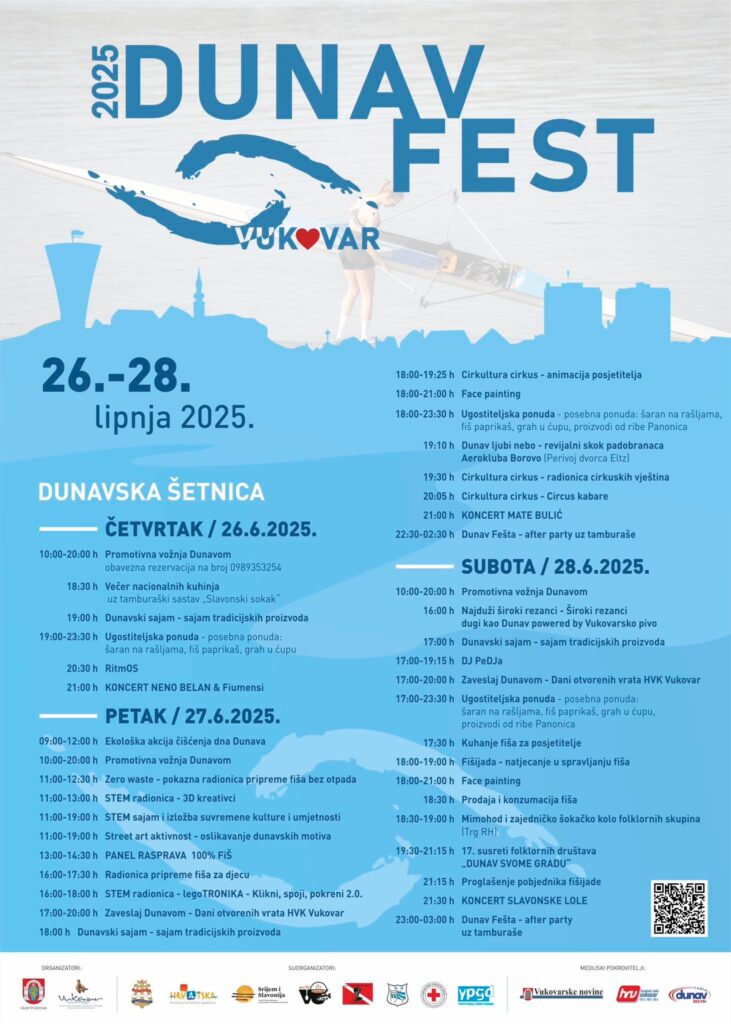 „DunavFest je zaista jedna spektakularna manifestacija koja na najbolji način oslikava identitet grada Vukovara – grada koji stoljećima živi uz Dunav i s Dunavom. Naša pozicija na ovoj velikoj europskoj rijeci ne samo da nas definira geografski, već i kulturno, tradicijski i turistički. Upravo kroz ovakve manifestacije potvrđujemo da je Dunav neizostavan dio svakodnevnog života Vukovaraca. Turistička zajednica Grada Vukovara već dugi niz godina obilježava Međunarodni dan Dunava, koji se tradicionalno slavi 29. lipnja, organizacijom fišijade – događanja koje okuplja ljubitelje slavonske gastronomije, tradicije i zajedništva. Ove godine fišijada će se održati u sklopu programa pod nazivom 100% fiš, koji uključuje ne samo kulinarski natjecateljski dio, već i niz edukativnih i promotivnih aktivnosti vezanih uz očuvanje prirodne baštine i važnosti Dunava za naš kraj”, rekla je Sekulić te podsjetila da javni poziv za prijave timova za fišijadu traju do 21.lipnja.