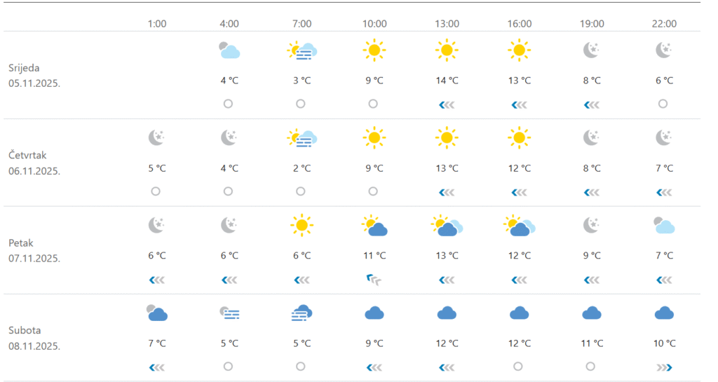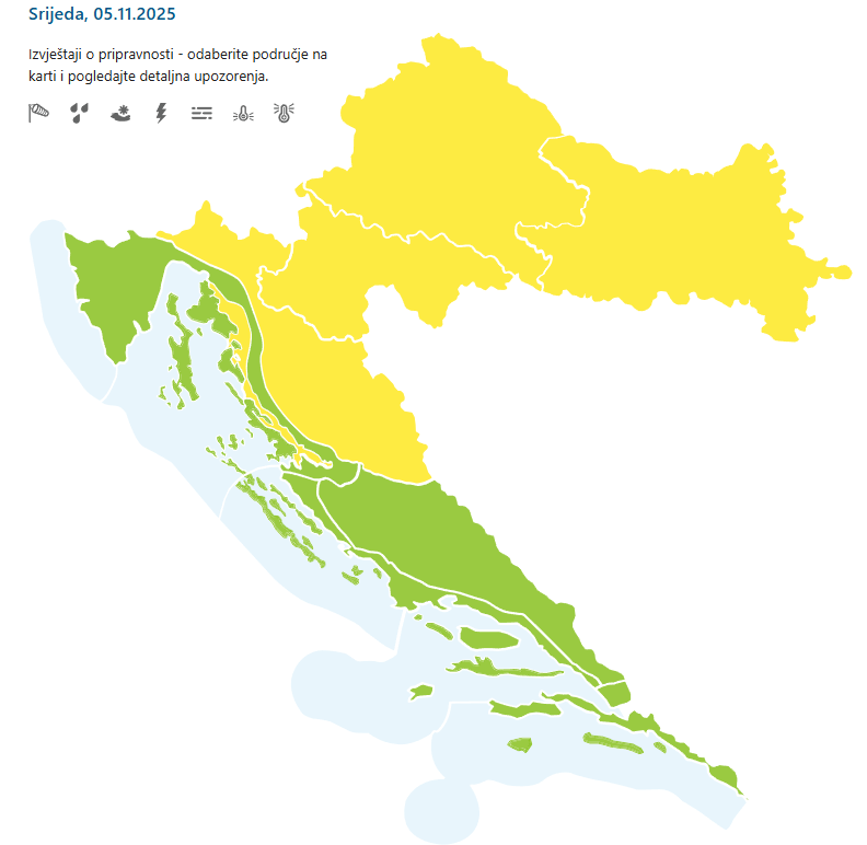 “Idućih će dana magla i niski oblaci biti sve češća i dugotrajnija pojava u nizinama, osobito u središnjoj Hrvatskoj, gdje će vjetar izostati. U višem gorju i u unutrašnjosti Dalmacije do petka sunčano, no u subotu će se i ondje naoblačiti.
