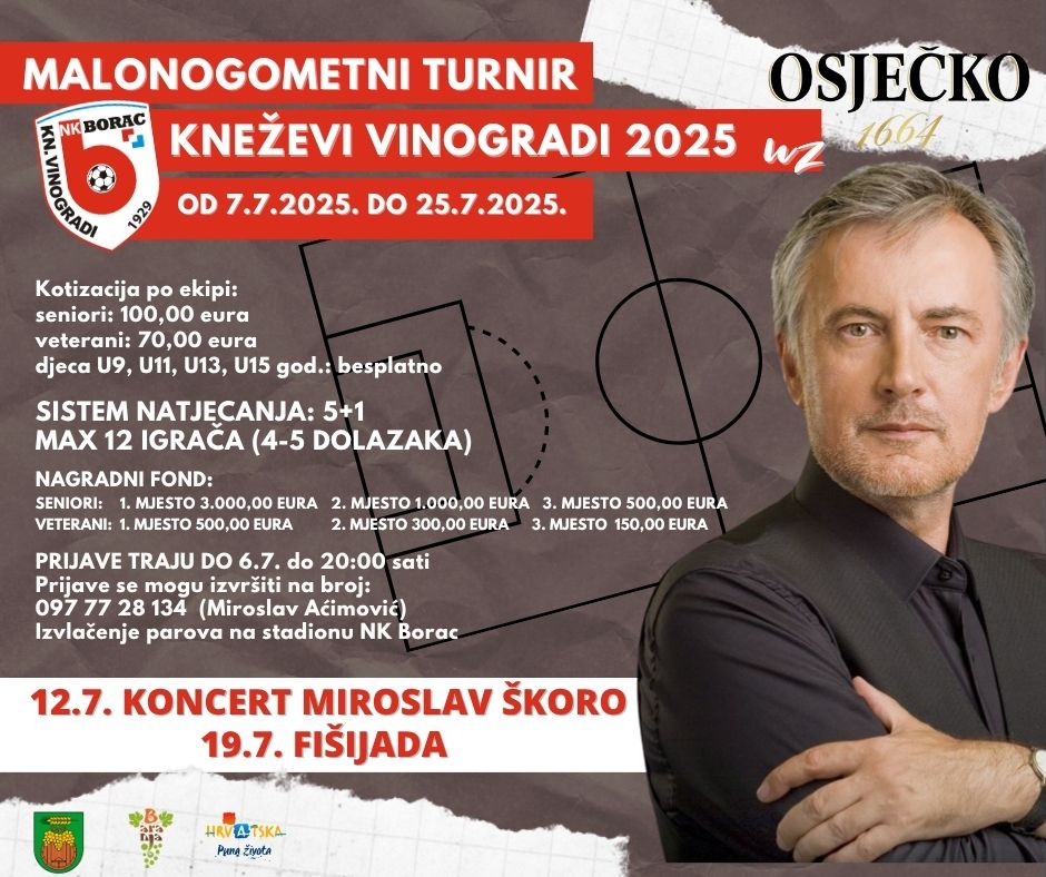 Malonogometni turnir Kneževi Vinogradi 2025. uz Osječko održat će se od 7. srpnja do 25. srpnja. Sistem natjecanja je 5+1, a ekipe mogu biti seniori, veterani, U9, U11, U13 i U15.