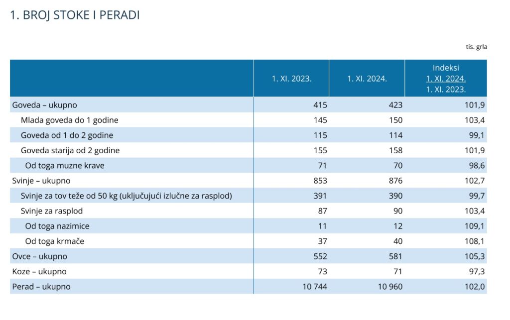Državni zavod za statistiku objavio je privremene podatke brojnog stanja stoke i peradi u 2024. godini