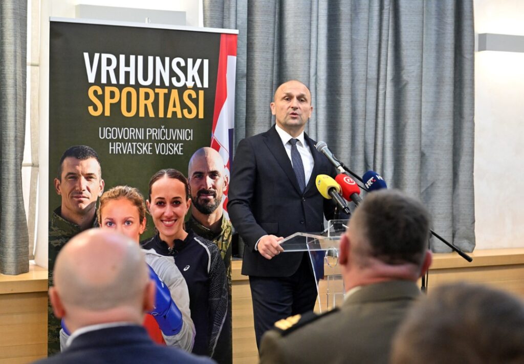 Potpredsjednik Vlade i ministar obrane Ivan Anušić uručio je utorak, 14. travnja 2026., u Ministarstvu obrane vrhunskim sportašima – ugovornim pričuvnicima Hrvatske vojske ugovore za 2026. godinu.
