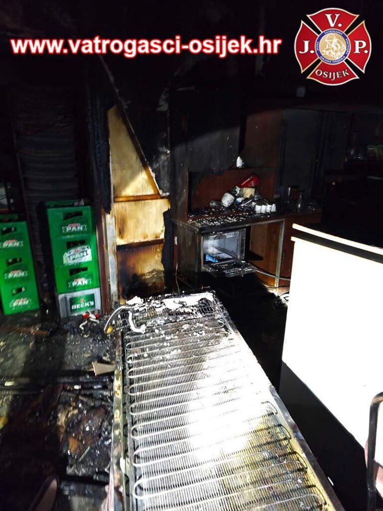 Požar su ugasili pripadnici Javne vatrogasne postrojbe grada Osijeka. Radi se o jednom od najstarijih osječkih ugostiteljskih objekata Forum 1.