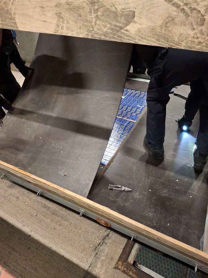 Nakon uklanjanja podne konstrukcije otkriven je posebno izrađen skriveni prostor u kojem se nalazilo ukupno 91.600 komada cigareta s duhanskim markicama Republike Kosovo.