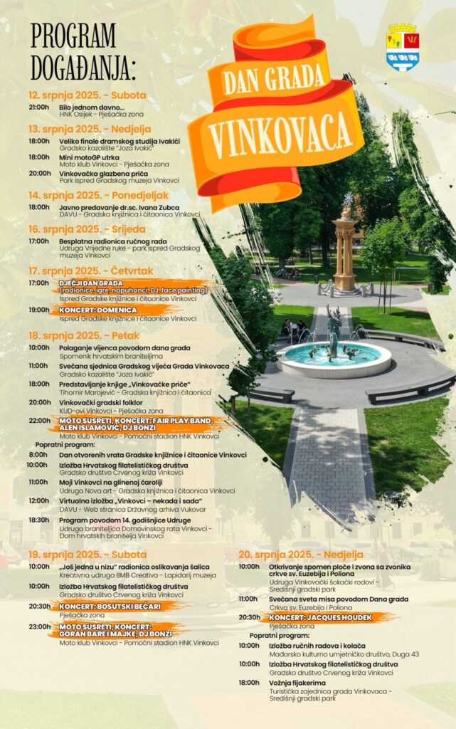 Grad Vinkovci spremno dočekuje Dan grada i blagdan sv. Ilije, svog nebeskog zaštitnika, s raznolikim i bogatim programom koji će obogatiti gradske ulice, trgove i kulturne prostore. Ovogodišnja proslava Dana grada Vinkovaca donosi niz prepoznatljivih i omiljenih aktivnosti koje iz godine u godinu okupljaju brojne građane i posjetitelje.