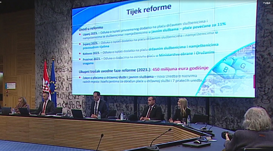 U uvodnoj fazi reforme u 2023. isplaćeno je 450 milijun eura, istaknuo je Malenica napomenuvši kako je od 2017. do 2023. osnovica plaće porasla za 40 posto.