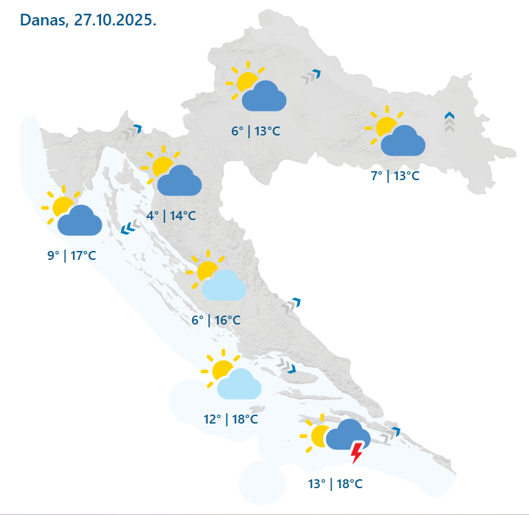 Ponedjeljak nam donosi promjenjivo vrijeme diljem Hrvatske